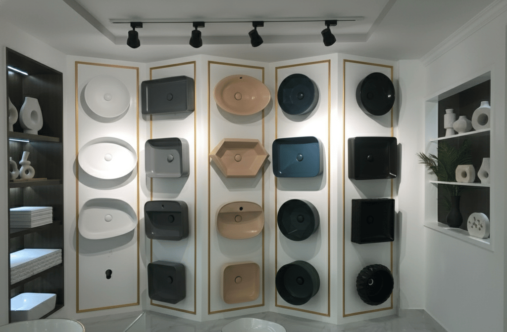 Design escultórico em concreto premium para banheiros sofisticados