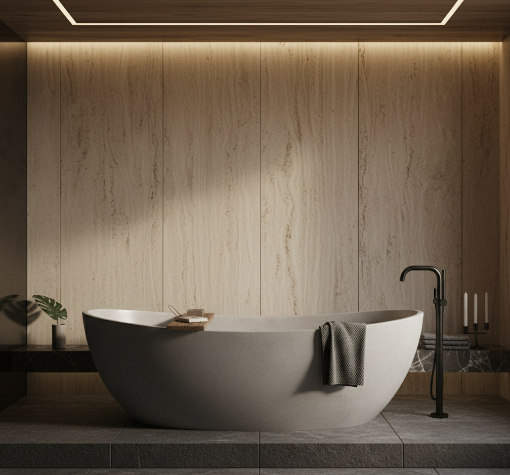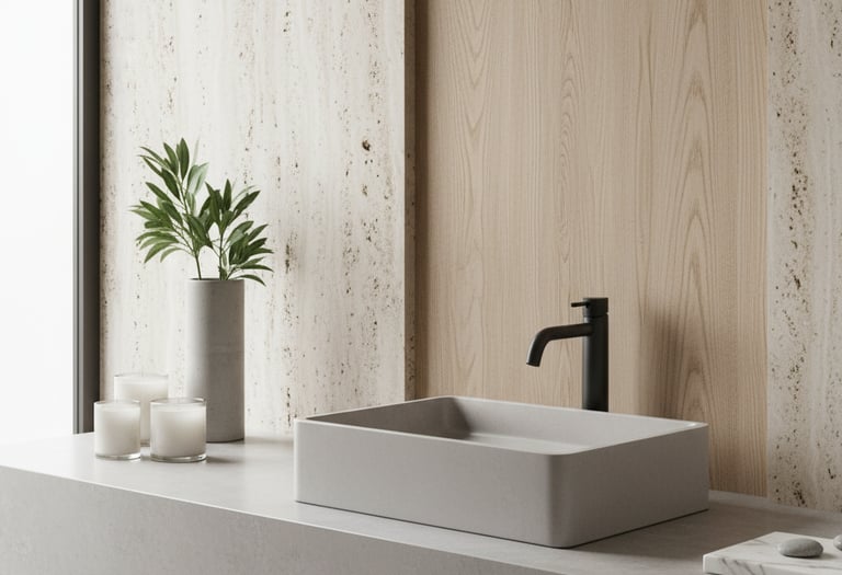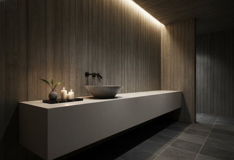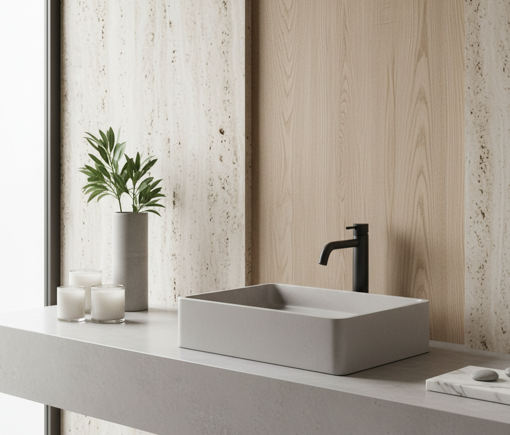 Unimos precisão técnica, estética minimalista e design autoral brasileiro para criar peças exclusivas — cubas, bancadas, banheiras e revestimentos — produzidas artesanalmente com acabamento impecável