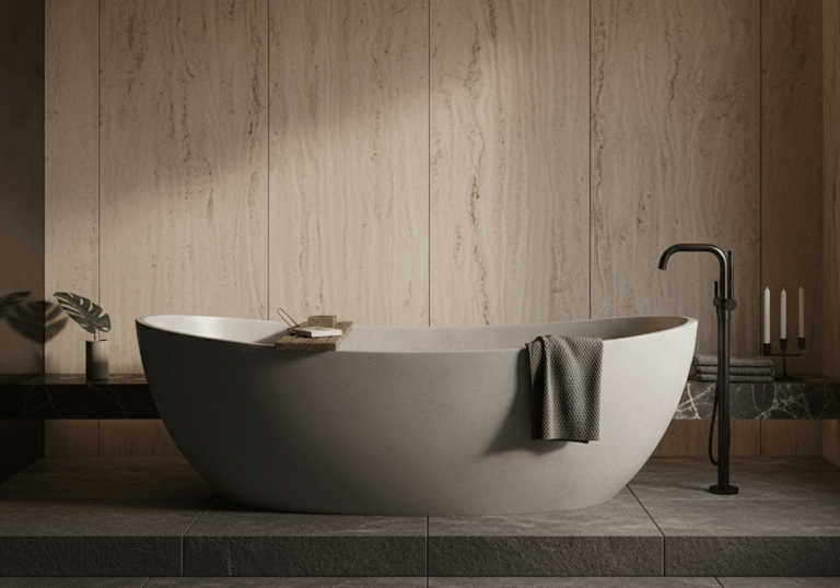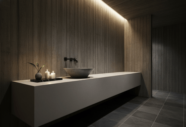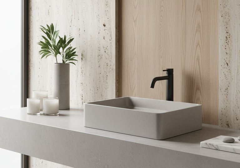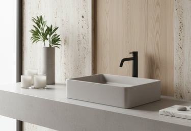Unimos precisão técnica, estética minimalista e design autoral brasileiro para criar peças exclusivas — cubas, bancadas, banheiras e revestimentos — produzidas artesanalmente com acabamento impecável