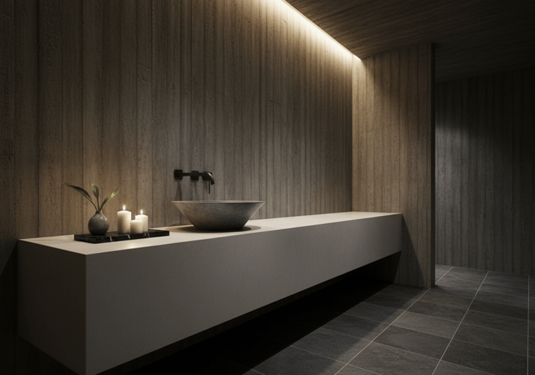 Design escultórico em concreto premium para banheiros sofisticados