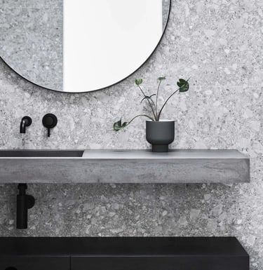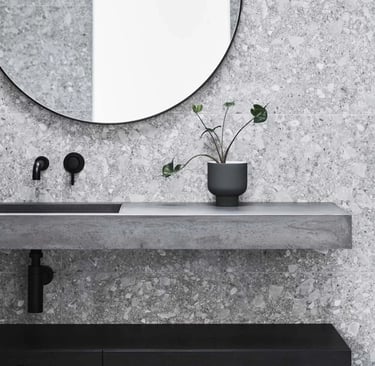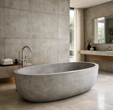 Quando trabalhado de forma autoral, o concreto oferece continuidade visual, textura tátil, neutralidade sofisticada e presença silenciosa. Ele não compete com o ambiente. Ele sustenta o ambiente.