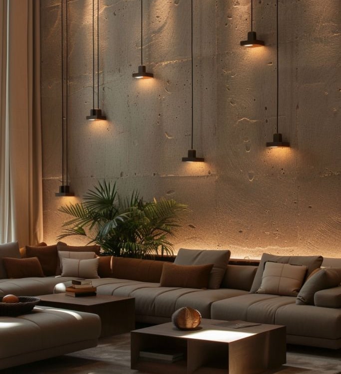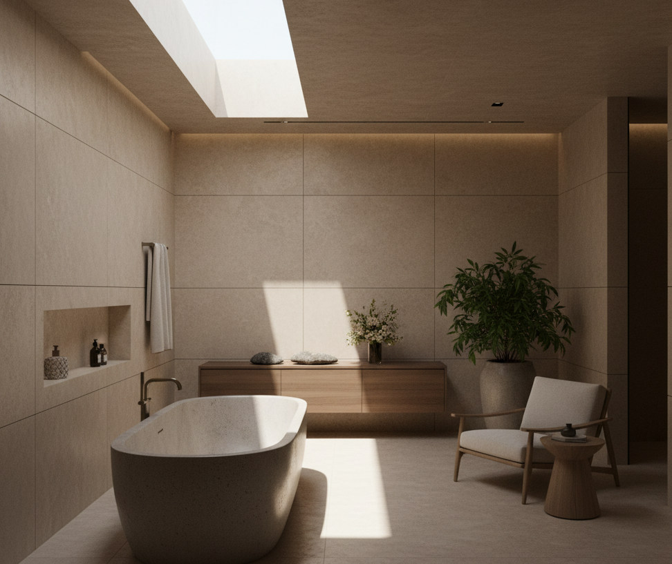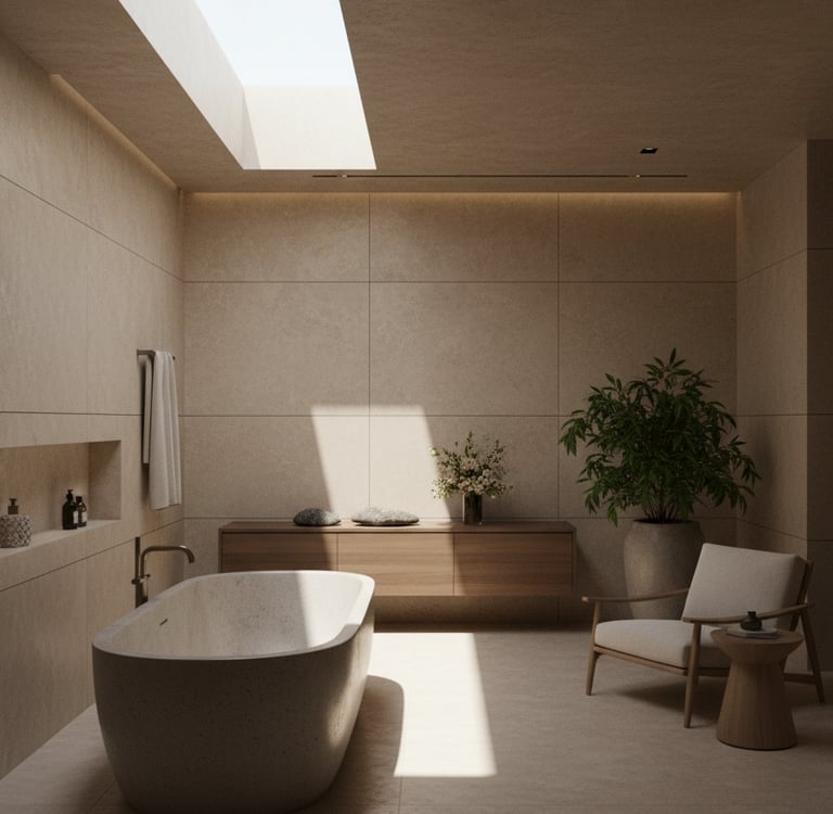 O resultado é um ambiente escultural, íntimo e sofisticado, onde o concreto deixa de ser bruto e passa a ser sensorial.