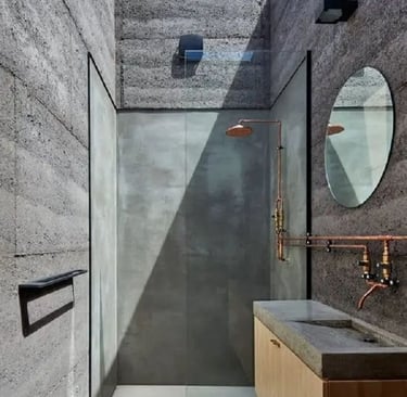 O concreto pode ser acolhedor em um banheiro?
